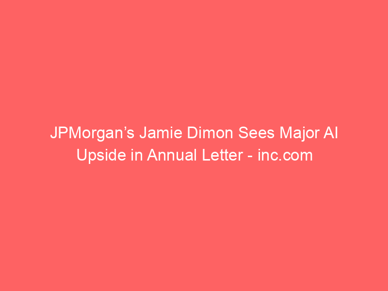JPMorgan’s Jamie Dimon Sees Major AI Upside in Annual Letter – inc.com / Artificial intelligence (AI) / By hi@aiweekly.co.in JPMorgan’s Jamie Dimon Sees Major AI Upside in Annual Letter inc.com