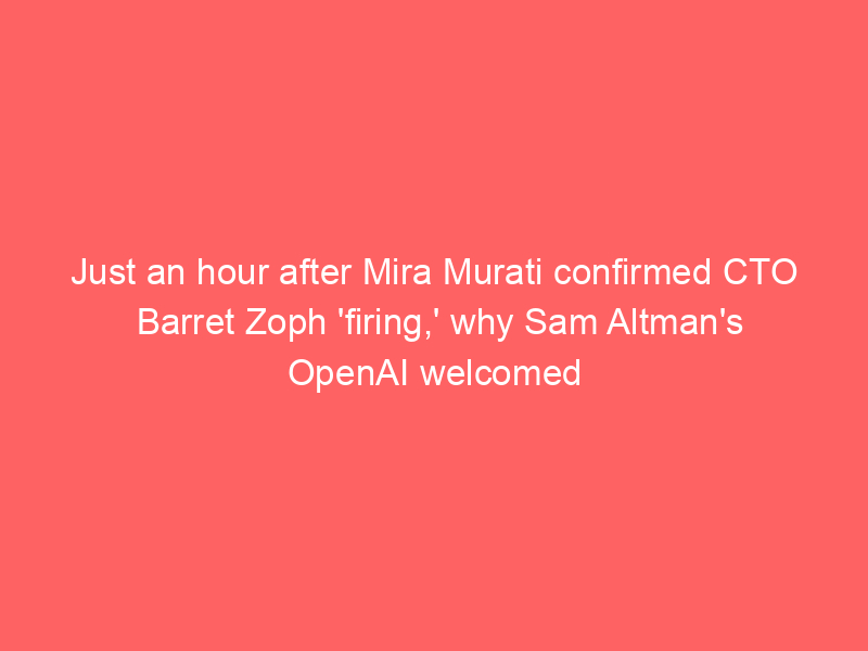Just an hour after Mira Murati confirmed CTO Barret Zoph ‘firing,’ why Sam Altman’s OpenAI welcomed him b – Times of India / ai, AI (Artificial Intelligence), Artificial Intelligence / By hi@aiweekly.co.in Just an hour after Mira Murati confirmed CTO Barret Zoph ‘firing,’ why Sam Altman’s OpenAI welcomed him b Times of India