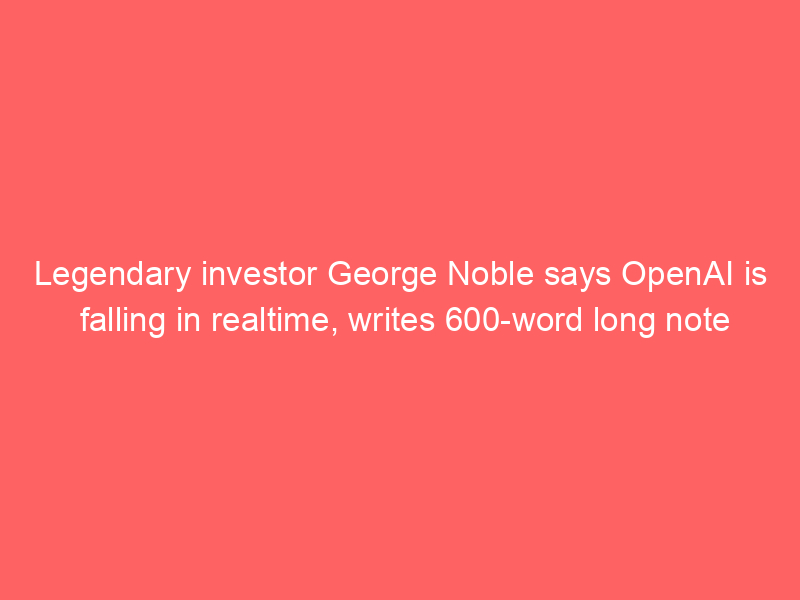 Legendary investor George Noble says OpenAI is falling in realtime, writes 600-word long note saying why – Times of India / ai, AI (Artificial Intelligence), Artificial Intelligence / By hi@aiweekly.co.in Legendary investor George Noble says OpenAI is falling in realtime, writes 600-word long note saying why Times of India