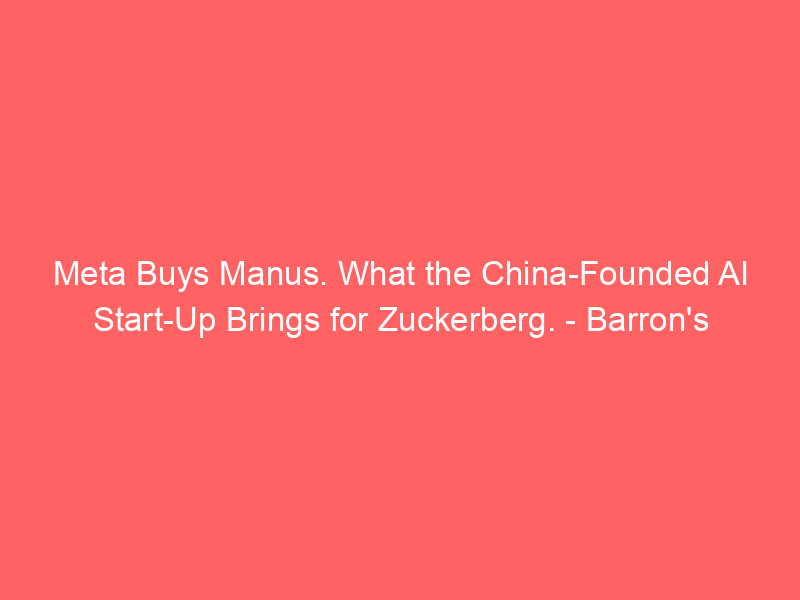 Meta Buys Manus. What the China-Founded AI Start-Up Brings for Zuckerberg. – Barron’s / Artificial intelligence (AI) / By hi@aiweekly.co.in Meta Buys Manus. What the China-Founded AI Start-Up Brings for Zuckerberg. Barron’s