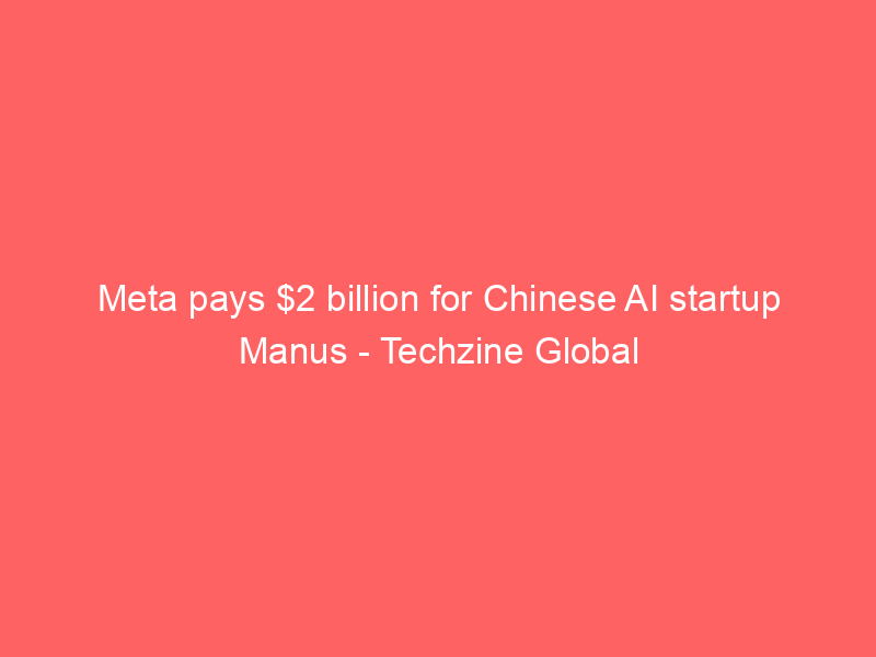 Meta pays $2 billion for Chinese AI startup Manus – Techzine Global / Artificial intelligence (AI) / By hi@aiweekly.co.in Meta pays $2 billion for Chinese AI startup Manus Techzine Global