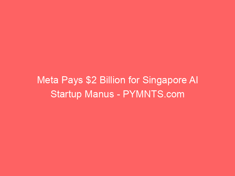 Meta Pays $2 Billion for Singapore AI Startup Manus – PYMNTS.com / Artificial intelligence (AI) / By hi@aiweekly.co.in Meta Pays $2 Billion for Singapore AI Startup Manus PYMNTS.com