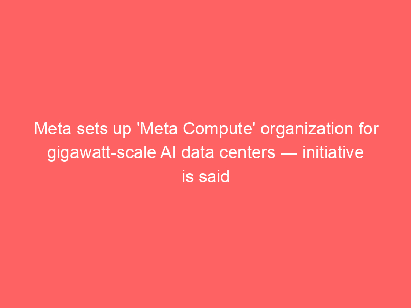 Meta sets up ‘Meta Compute’ organization for gigawatt-scale AI data centers — initiative is said to consumer hundreds of gigawatts over time – Tom’s Hardware / Artificial intelligence (AI) / By hi@aiweekly.co.in Meta sets up ‘Meta Compute’ organization for gigawatt-scale AI data centers — initiative is said to consumer hundreds of gigawatts over time Tom’s Hardware