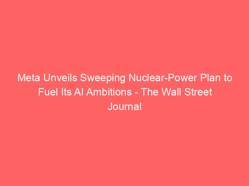 Meta Unveils Sweeping Nuclear-Power Plan to Fuel Its AI Ambitions – The Wall Street Journal / Artificial intelligence (AI) / By hi@aiweekly.co.in Meta Unveils Sweeping Nuclear-Power Plan to Fuel Its AI Ambitions The Wall Street Journal