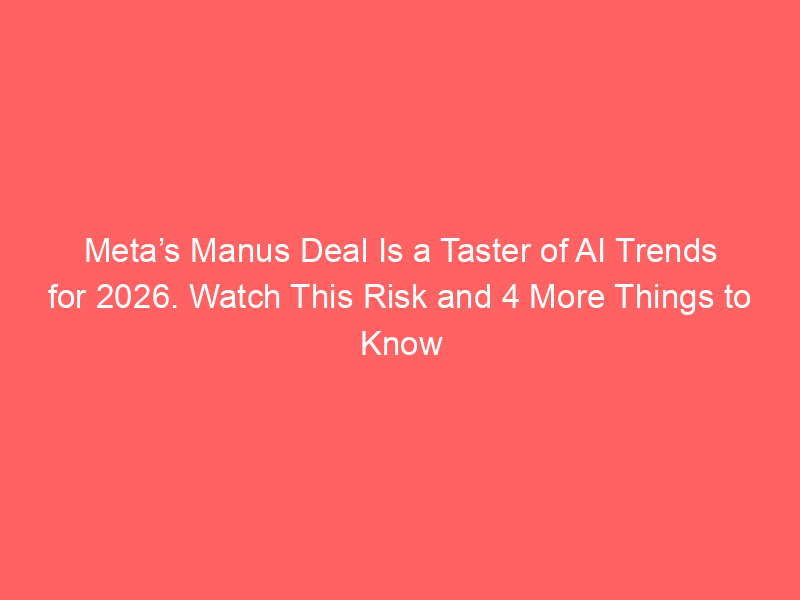 Meta’s Manus Deal Is a Taster of AI Trends for 2026. Watch This Risk and 4 More Things to Know Today. – Barron’s / Artificial intelligence (AI) / By hi@aiweekly.co.in Meta’s Manus Deal Is a Taster of AI Trends for 2026. Watch This Risk and 4 More Things to Know Today. Barron’s