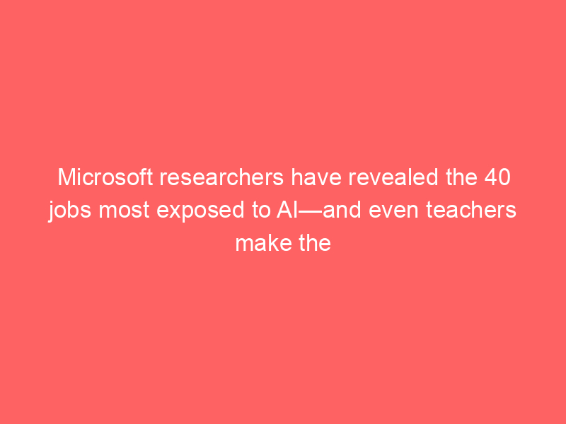 Microsoft researchers have revealed the 40 jobs most exposed to AI—and even teachers make the list – Fortune / Artificial intelligence (AI) / By hi@aiweekly.co.in Microsoft researchers have revealed the 40 jobs most exposed to AI—and even teachers make the list Fortune