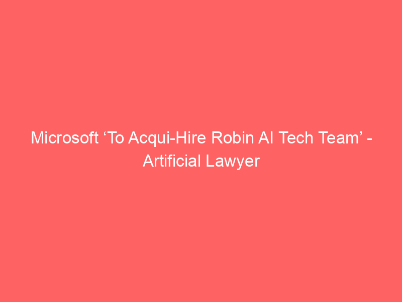 Microsoft ‘To Acqui-Hire Robin AI Tech Team’ – Artificial Lawyer / Artificial intelligence (AI) / By hi@aiweekly.co.in Microsoft ‘To Acqui-Hire Robin AI Tech Team’ Artificial Lawyer