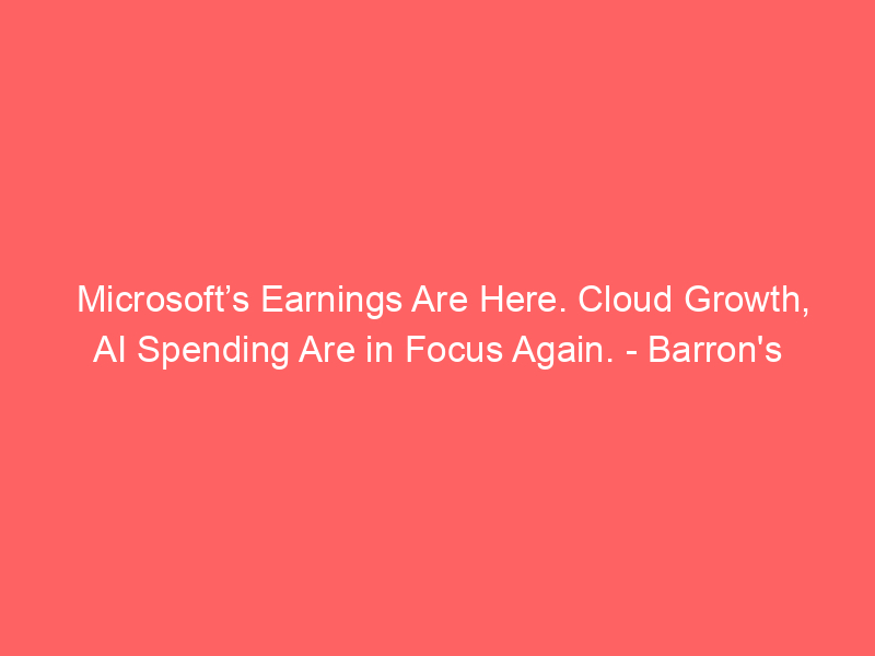 Microsoft’s Earnings Are Here. Cloud Growth, AI Spending Are in Focus Again. – Barron’s / Artificial intelligence (AI) / By hi@aiweekly.co.in Microsoft’s Earnings Are Here. Cloud Growth, AI Spending Are in Focus Again. Barron’s