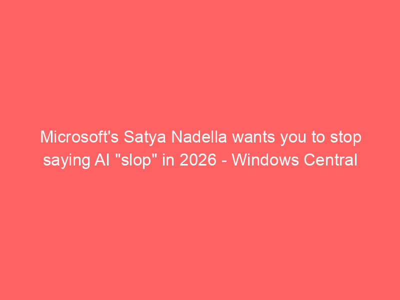 Microsoft’s Satya Nadella wants you to stop saying AI “slop” in 2026 Windows CentralThe year Microsoft CEO Satya Nadella appointed new CEO to run the company’s biggest business with the aim to focus on … Times of IndiaMicrosoft CEO Satya Nadella is now blogging about AI slop The VergeEven Copilot thinks Satya Nadella’s blog post sounds like a robot wrote it Windows CentralFrom ‘AI slop’ to substance? Microsoft CEO Satya Nadella wants to reset the narrative for 2026 Moneycontrol
