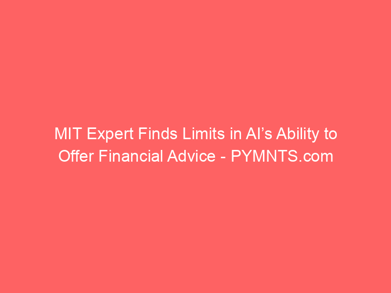 MIT Expert Finds Limits in AI’s Ability to Offer Financial Advice – PYMNTS.com / Artificial intelligence (AI) / By hi@aiweekly.co.in MIT Expert Finds Limits in AI’s Ability to Offer Financial Advice PYMNTS.com