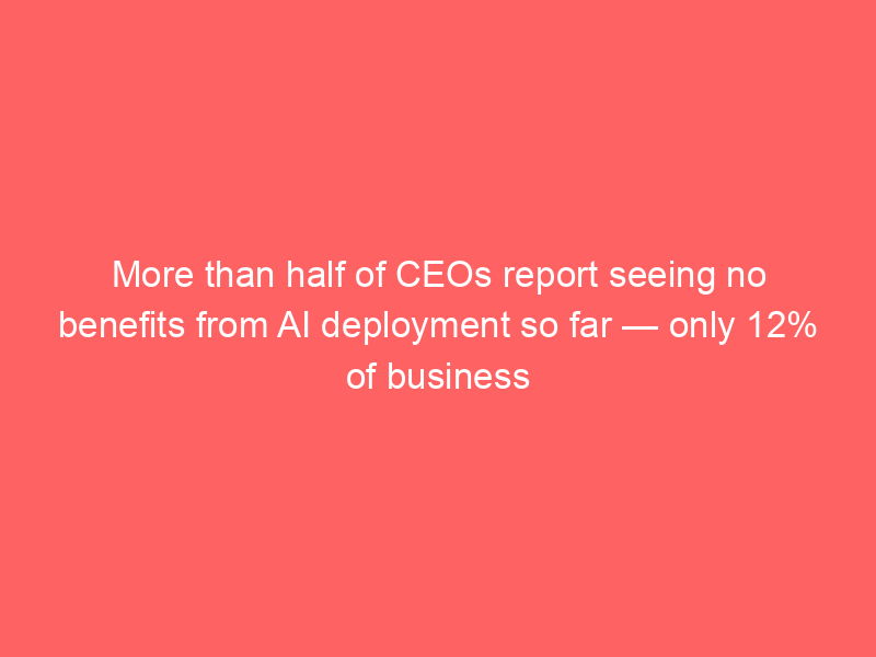 More than half of CEOs report seeing no benefits from AI deployment so far — only 12% of business leaders hit the jackpot of higher revenues and reduced costs – Tom’s Hardware / Artificial intelligence (AI) / By hi@aiweekly.co.in More than half of CEOs report seeing no benefits from AI deployment so far — only 12% of business leaders hit the jackpot of higher revenues and reduced costs Tom’s Hardware