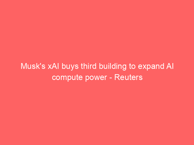Musk’s xAI buys third building to expand AI compute power – Reuters / Artificial intelligence (AI) / By hi@aiweekly.co.in Musk’s xAI buys third building to expand AI compute power Reuters
