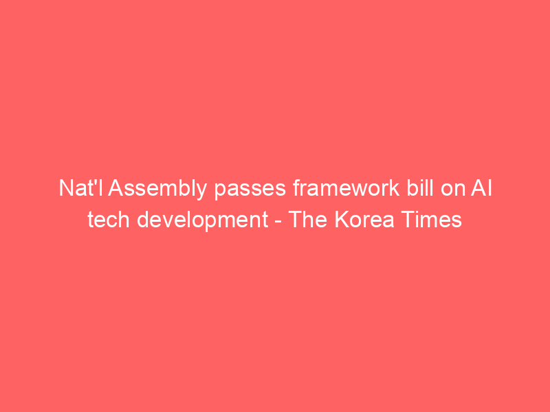 Nat’l Assembly passes framework bill on AI tech development – The Korea Times / Artificial intelligence (AI) / By hi@aiweekly.co.in Nat’l Assembly passes framework bill on AI tech development The Korea Times
