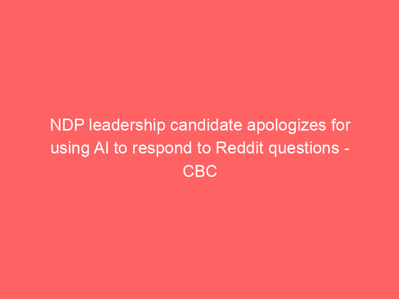 NDP leadership candidate apologizes for using AI to respond to Reddit questions – CBC / Artificial intelligence (AI) / By hi@aiweekly.co.in NDP leadership candidate apologizes for using AI to respond to Reddit questions CBC