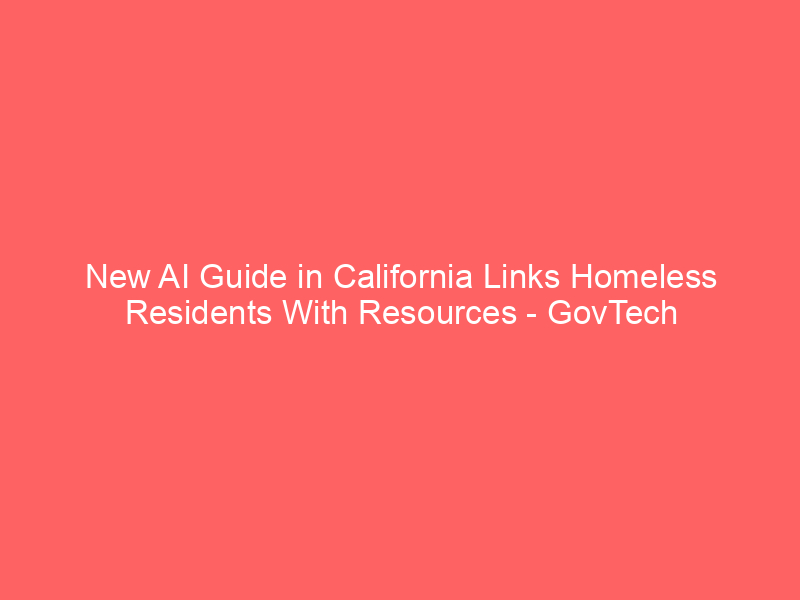 New AI Guide in California Links Homeless Residents With Resources – GovTech / Artificial intelligence (AI) / By hi@aiweekly.co.in New AI Guide in California Links Homeless Residents With Resources GovTech