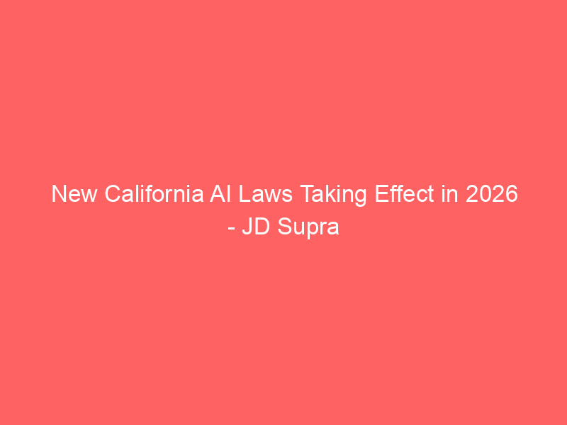 New California AI Laws Taking Effect in 2026 – JD Supra / Artificial intelligence (AI) / By hi@aiweekly.co.in New California AI Laws Taking Effect in 2026 JD Supra