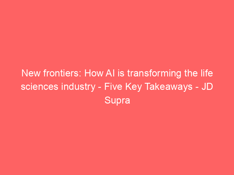 New frontiers: How AI is transforming the life sciences industry – Five Key Takeaways – JD Supra / Artificial intelligence (AI) / By hi@aiweekly.co.in New frontiers: How AI is transforming the life sciences industry – Five Key Takeaways JD Supra