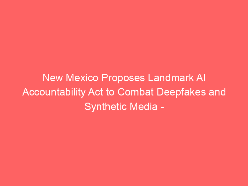 New Mexico Proposes Landmark AI Accountability Act to Combat Deepfakes and Synthetic Media – 2ndlifemediaalamogordo.town.news / Artificial intelligence (AI) / By hi@aiweekly.co.in New Mexico Proposes Landmark AI Accountability Act to Combat Deepfakes and Synthetic Media 2ndlifemediaalamogordo.town.news