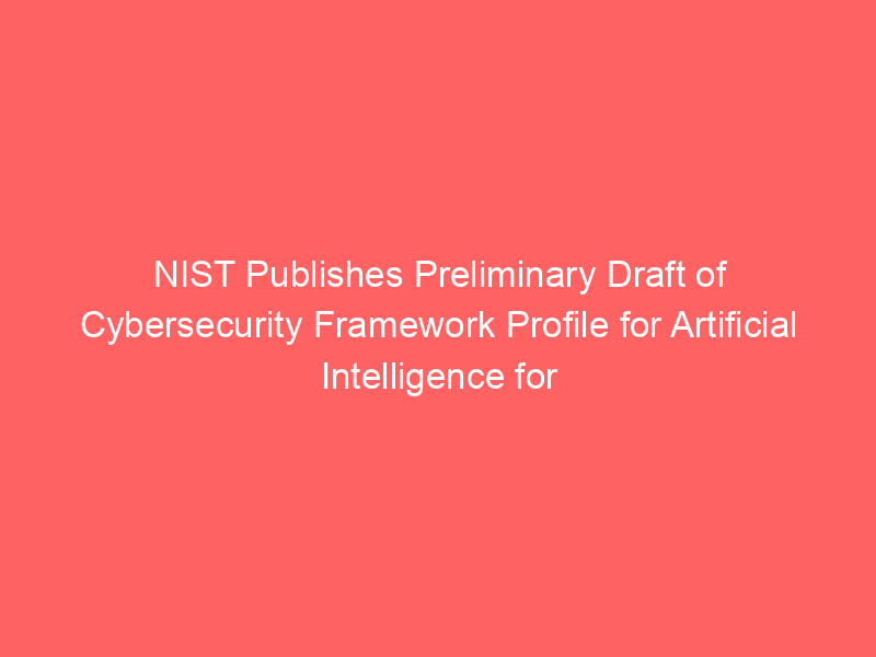 NIST Publishes Preliminary Draft of Cybersecurity Framework Profile for Artificial Intelligence for Public Comment – Inside Privacy / Artificial intelligence (AI) / By hi@aiweekly.co.in NIST Publishes Preliminary Draft of Cybersecurity Framework Profile for Artificial Intelligence for Public Comment Inside Privacy