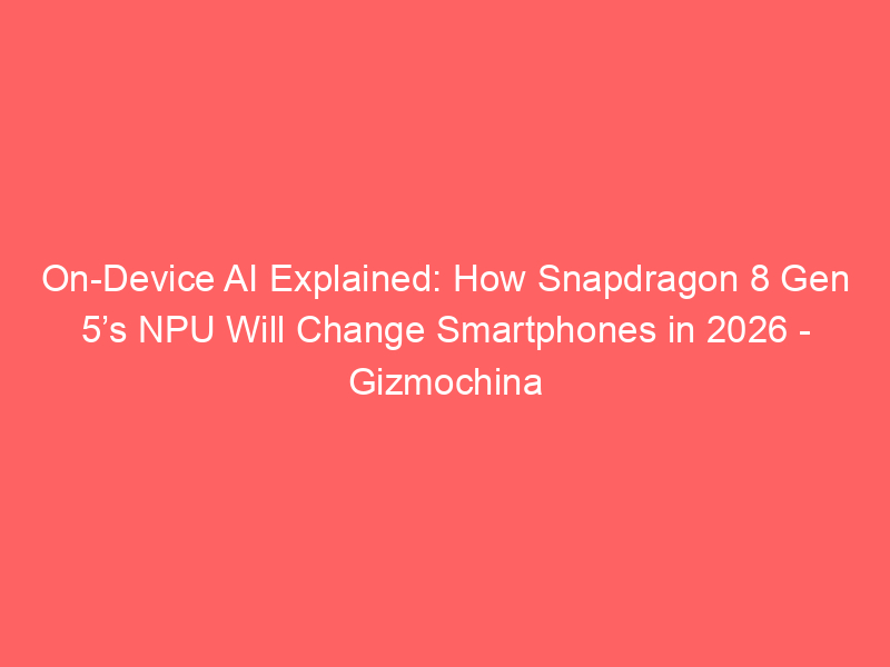 On-Device AI Explained: How Snapdragon 8 Gen 5’s NPU Will Change Smartphones in 2026 – Gizmochina / Artificial Intelligence / By hi@aiweekly.co.in On-Device AI Explained: How Snapdragon 8 Gen 5’s NPU Will Change Smartphones in 2026 Gizmochina