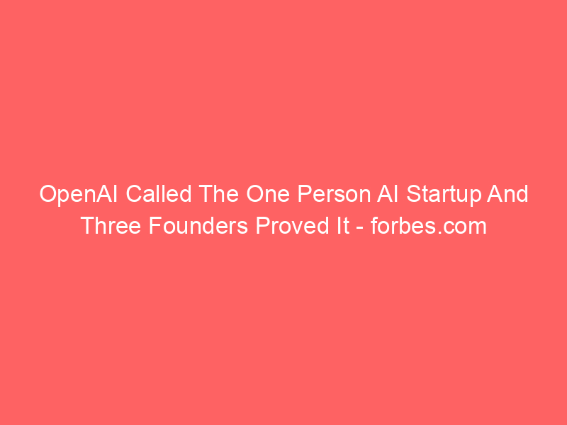 OpenAI Called The One Person AI Startup And Three Founders Proved It – forbes.com / ai, AI (Artificial Intelligence), Artificial Intelligence / By hi@aiweekly.co.in OpenAI Called The One Person AI Startup And Three Founders Proved It forbes.com