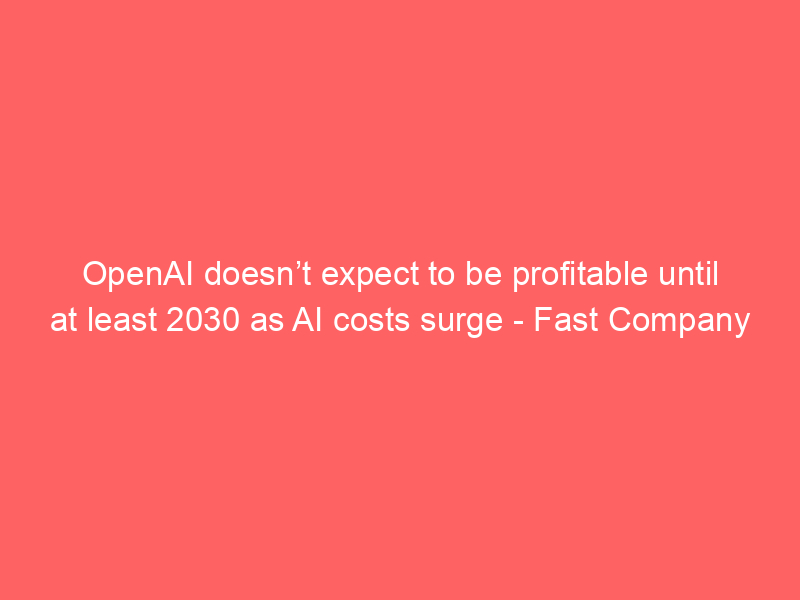 OpenAI doesn’t expect to be profitable until at least 2030 as AI costs surge – Fast Company / Artificial intelligence (AI) / By hi@aiweekly.co.in OpenAI doesn’t expect to be profitable until at least 2030 as AI costs surge Fast Company