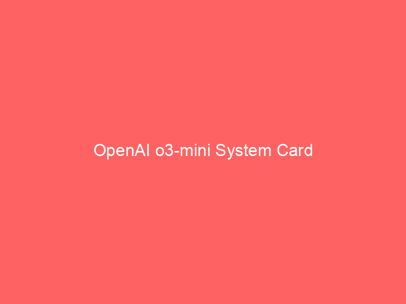 This report outlines the safety work carried out for the OpenAI o3-mini model, including safety evaluations, external red teaming, and Preparedness Framework evaluations.