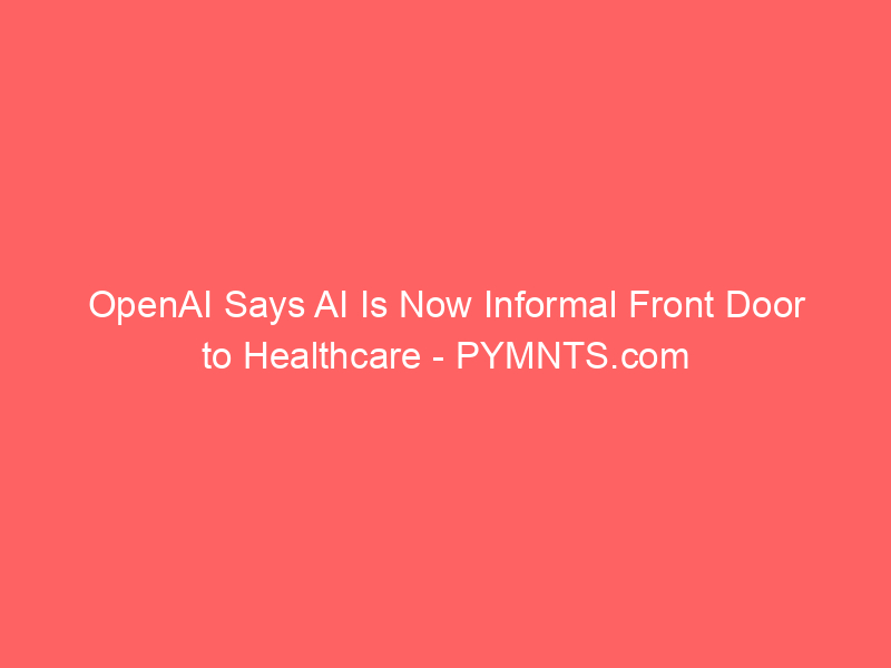 OpenAI Says AI Is Now Informal Front Door to Healthcare – PYMNTS.com / Artificial intelligence (AI) / By hi@aiweekly.co.in OpenAI Says AI Is Now Informal Front Door to Healthcare PYMNTS.com