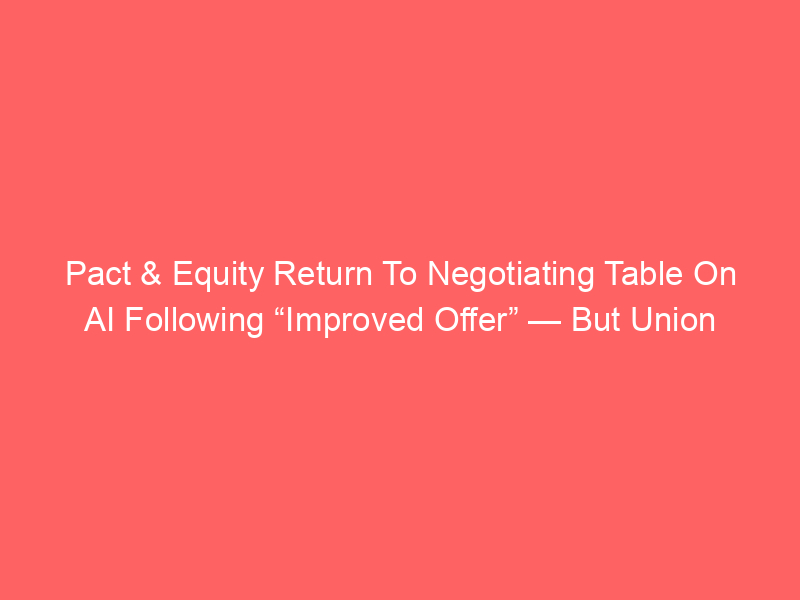 Pact & Equity Return To Negotiating Table On AI Following “Improved Offer” — But Union Says Industrial Action Remains Possibility – Deadline / Artificial intelligence (AI) / By hi@aiweekly.co.in Pact & Equity Return To Negotiating Table On AI Following “Improved Offer” — But Union Says Industrial Action Remains Possibility Deadline