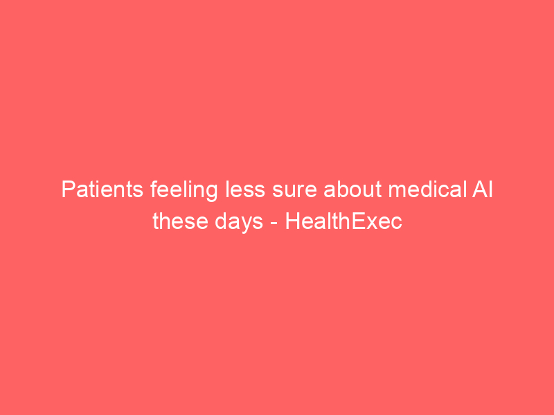 Patients feeling less sure about medical AI these days – HealthExec / Artificial intelligence (AI) / By hi@aiweekly.co.in Patients feeling less sure about medical AI these days HealthExec