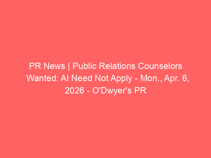 PR News | Public Relations Counselors Wanted: AI Need Not Apply – Mon., Apr. 6, 2026 – O’Dwyer’s PR / Artificial intelligence (AI) / By hi@aiweekly.co.in PR News | Public Relations Counselors Wanted: AI Need Not Apply – Mon., Apr. 6, 2026 O’Dwyer’s PR