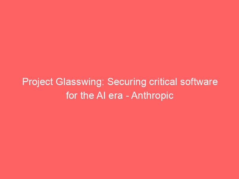 Project Glasswing: Securing critical software for the AI era – Anthropic / ai, AI (Artificial Intelligence), Artificial Intelligence / By hi@aiweekly.co.in Project Glasswing: Securing critical software for the AI era Anthropic