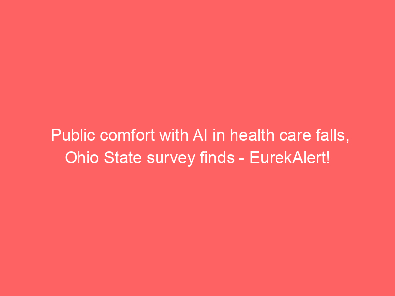 Public comfort with AI in health care falls, Ohio State survey finds – EurekAlert! / Artificial intelligence (AI) / By hi@aiweekly.co.in Public comfort with AI in health care falls, Ohio State survey finds EurekAlert!