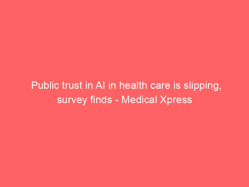 Public trust in AI in health care is slipping, survey finds – Medical Xpress / Artificial intelligence (AI) / By hi@aiweekly.co.in Public trust in AI in health care is slipping, survey finds Medical Xpress