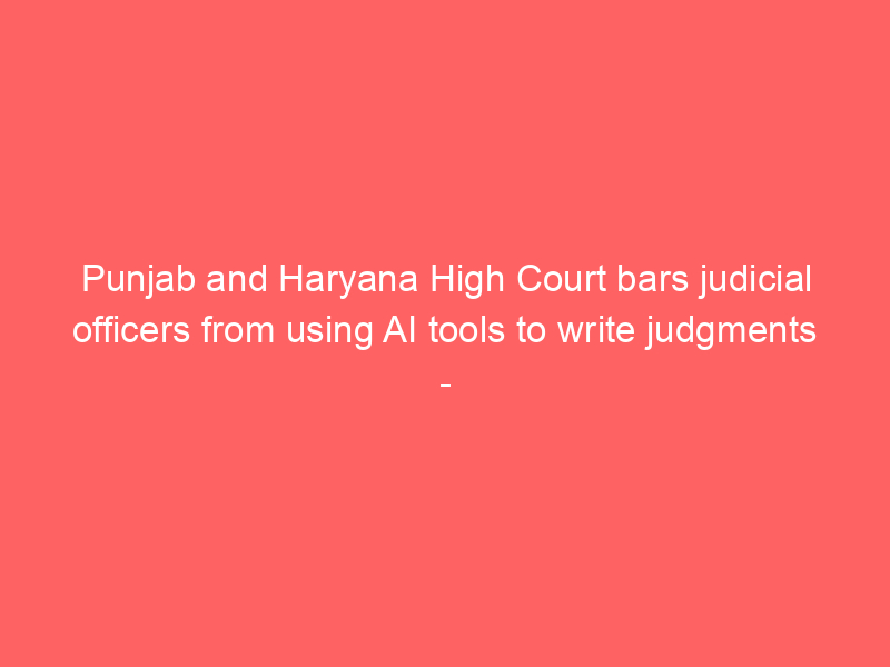 Punjab and Haryana High Court bars judicial officers from using AI tools to write judgments – thehindu.com / Artificial intelligence (AI) / By hi@aiweekly.co.in Punjab and Haryana High Court bars judicial officers from using AI tools to write judgments thehindu.com