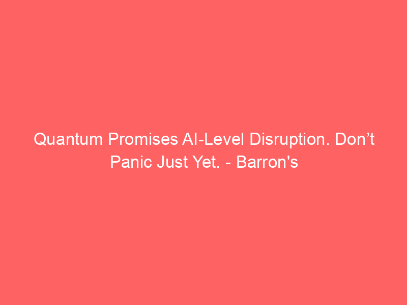 Quantum Promises AI-Level Disruption. Don’t Panic Just Yet. – Barron’s / Artificial intelligence (AI) / By hi@aiweekly.co.in Quantum Promises AI-Level Disruption. Don’t Panic Just Yet. Barron’s