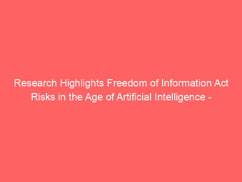 Research Highlights Freedom of Information Act Risks in the Age of Artificial Intelligence – Homeland Security Today / Artificial intelligence (AI) / By hi@aiweekly.co.in Research Highlights Freedom of Information Act Risks in the Age of Artificial Intelligence Homeland Security Today