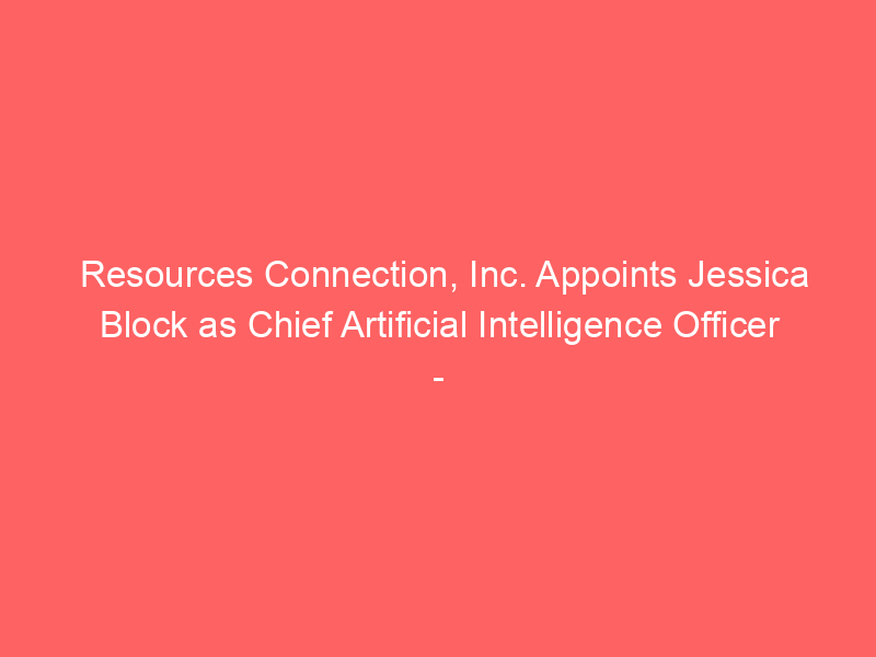 Resources Connection, Inc. Appoints Jessica Block as Chief Artificial Intelligence Officer – marketscreener.com / Artificial intelligence (AI) / By hi@aiweekly.co.in Resources Connection, Inc. Appoints Jessica Block as Chief Artificial Intelligence Officer marketscreener.com