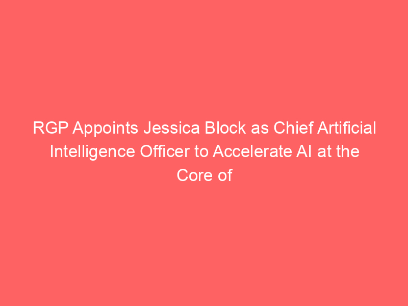 RGP Appoints Jessica Block as Chief Artificial Intelligence Officer to Accelerate AI at the Core of Its Business and Client Offerings – Voice of Alexandria