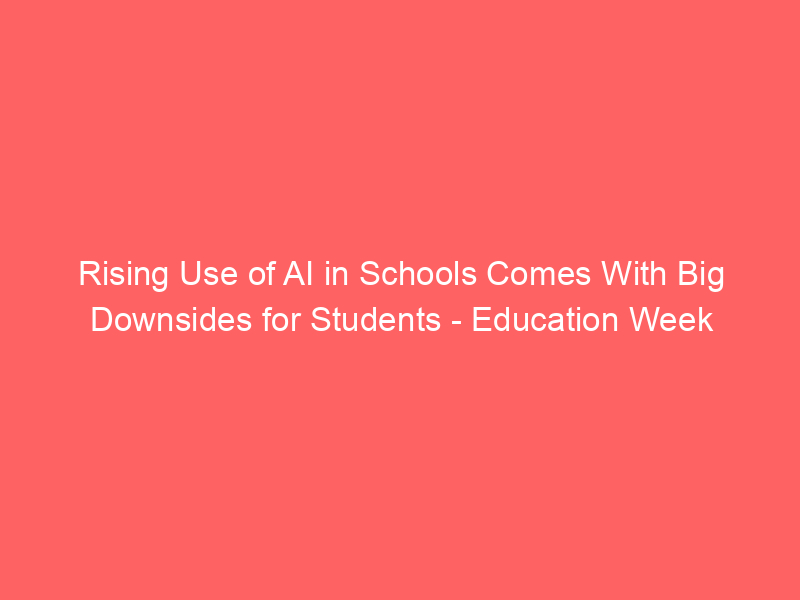 Rising Use of AI in Schools Comes With Big Downsides for Students – Education Week / Artificial intelligence (AI) / By hi@aiweekly.co.in Rising Use of AI in Schools Comes With Big Downsides for Students Education Week