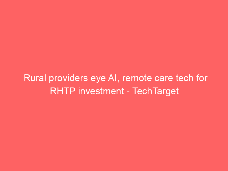 Rural providers eye AI, remote care tech for RHTP investment – TechTarget / Artificial intelligence (AI) / By hi@aiweekly.co.in Rural providers eye AI, remote care tech for RHTP investment TechTarget