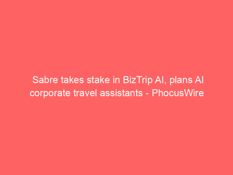 Sabre takes stake in BizTrip AI, plans AI corporate travel assistants – PhocusWire / Artificial intelligence (AI) / By hi@aiweekly.co.in Sabre takes stake in BizTrip AI, plans AI corporate travel assistants PhocusWire