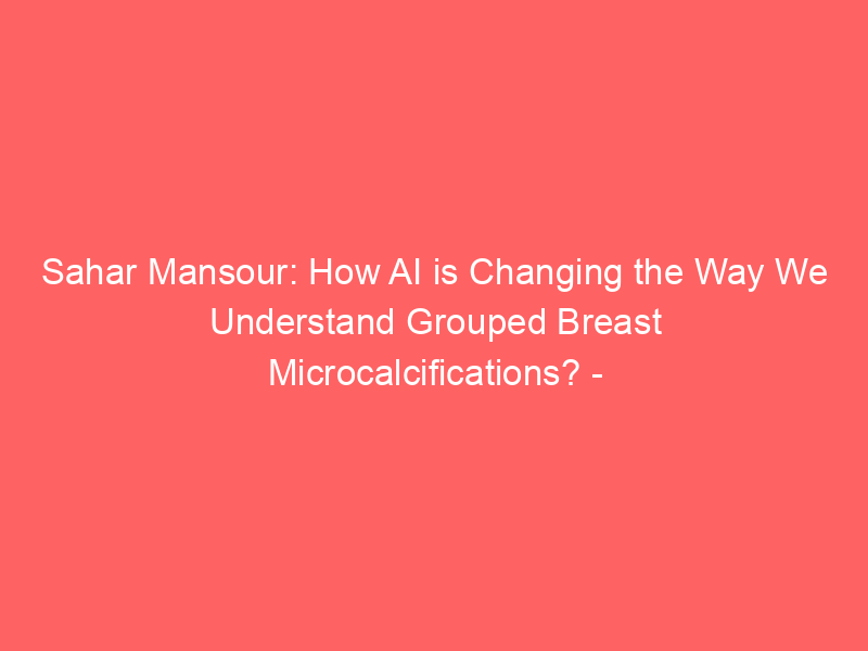 Sahar Mansour: How AI is Changing the Way We Understand Grouped Breast Microcalcifications? – Oncodaily / Artificial intelligence (AI) / By hi@aiweekly.co.in Sahar Mansour: How AI is Changing the Way We Understand Grouped Breast Microcalcifications? Oncodaily
