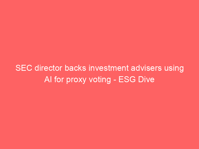 SEC director backs investment advisers using AI for proxy voting – ESG Dive / Artificial intelligence (AI) / By hi@aiweekly.co.in SEC director backs investment advisers using AI for proxy voting ESG Dive