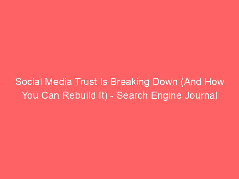 Social Media Trust Is Breaking Down (And How You Can Rebuild It) – Search Engine Journal