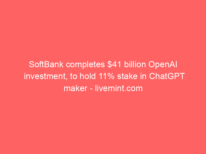 SoftBank completes $41 billion OpenAI investment, to hold 11% stake in ChatGPT maker livemint.comSoftBank has completed its $40 billion investment in OpenAI: Report The HinduSoftBank completes $41 billion investment in OpenAI, deepening bet on AI IndiatimesTesla-compiled estimates show Q4 deliveries expected to fall 15% from last year Sherwood NewsTop News Today: TSMC 2nm Chips 2025, SoftBank’s $40B OpenAI Bet Analytics Insight