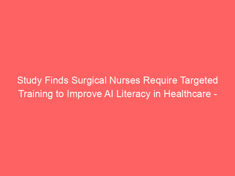 Study Finds Surgical Nurses Require Targeted Training to Improve AI Literacy in Healthcare – geneonline.com / Artificial intelligence (AI) / By hi@aiweekly.co.in Study Finds Surgical Nurses Require Targeted Training to Improve AI Literacy in Healthcare geneonline.com