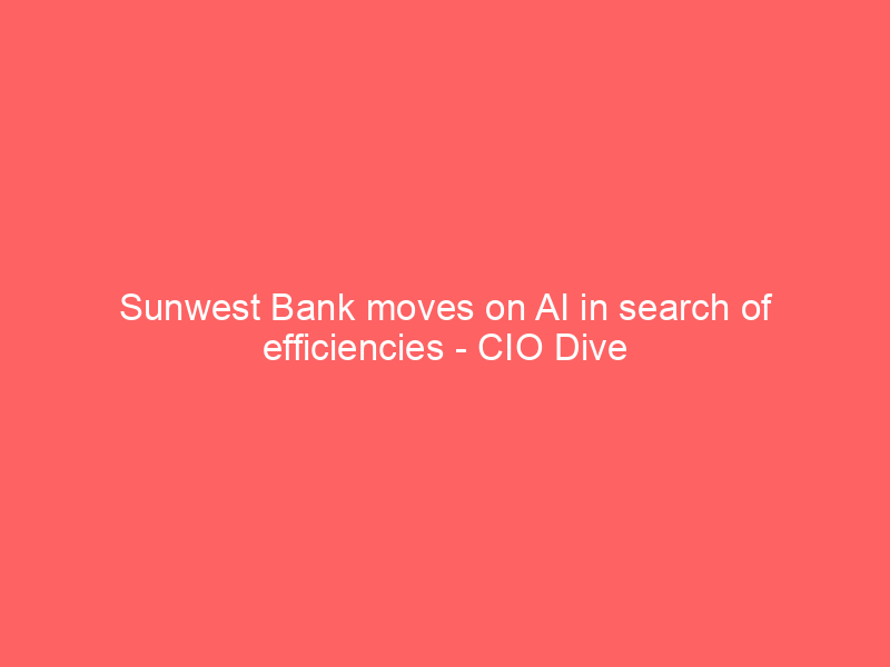 Sunwest Bank moves on AI in search of efficiencies – CIO Dive / Artificial intelligence (AI) / By hi@aiweekly.co.in Sunwest Bank moves on AI in search of efficiencies CIO Dive