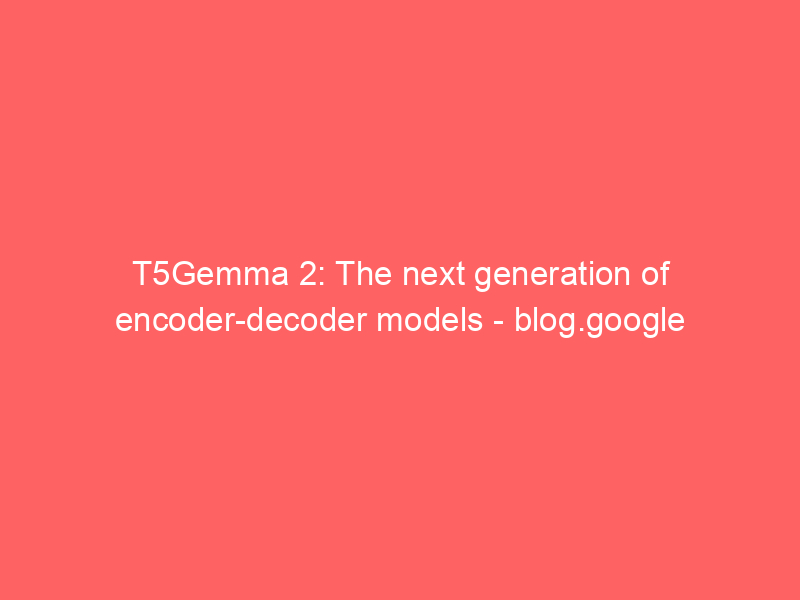 T5Gemma 2: The next generation of encoder-decoder models – blog.google / Artificial Intelligence / By hi@aiweekly.co.in T5Gemma 2: The next generation of encoder-decoder models blog.google