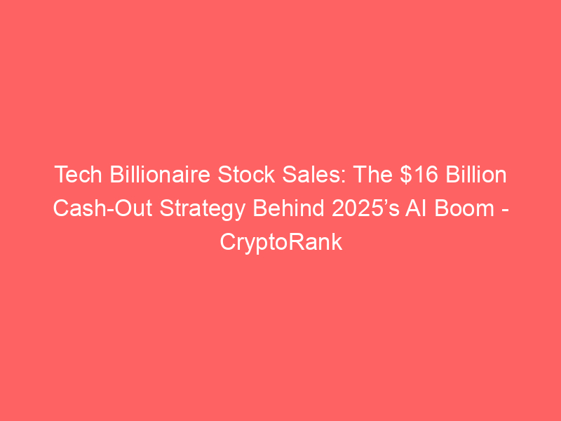 Tech Billionaire Stock Sales: The $16 Billion Cash-Out Strategy Behind 2025’s AI Boom – CryptoRank / Artificial intelligence (AI) / By hi@aiweekly.co.in Tech Billionaire Stock Sales: The $16 Billion Cash-Out Strategy Behind 2025’s AI Boom CryptoRank